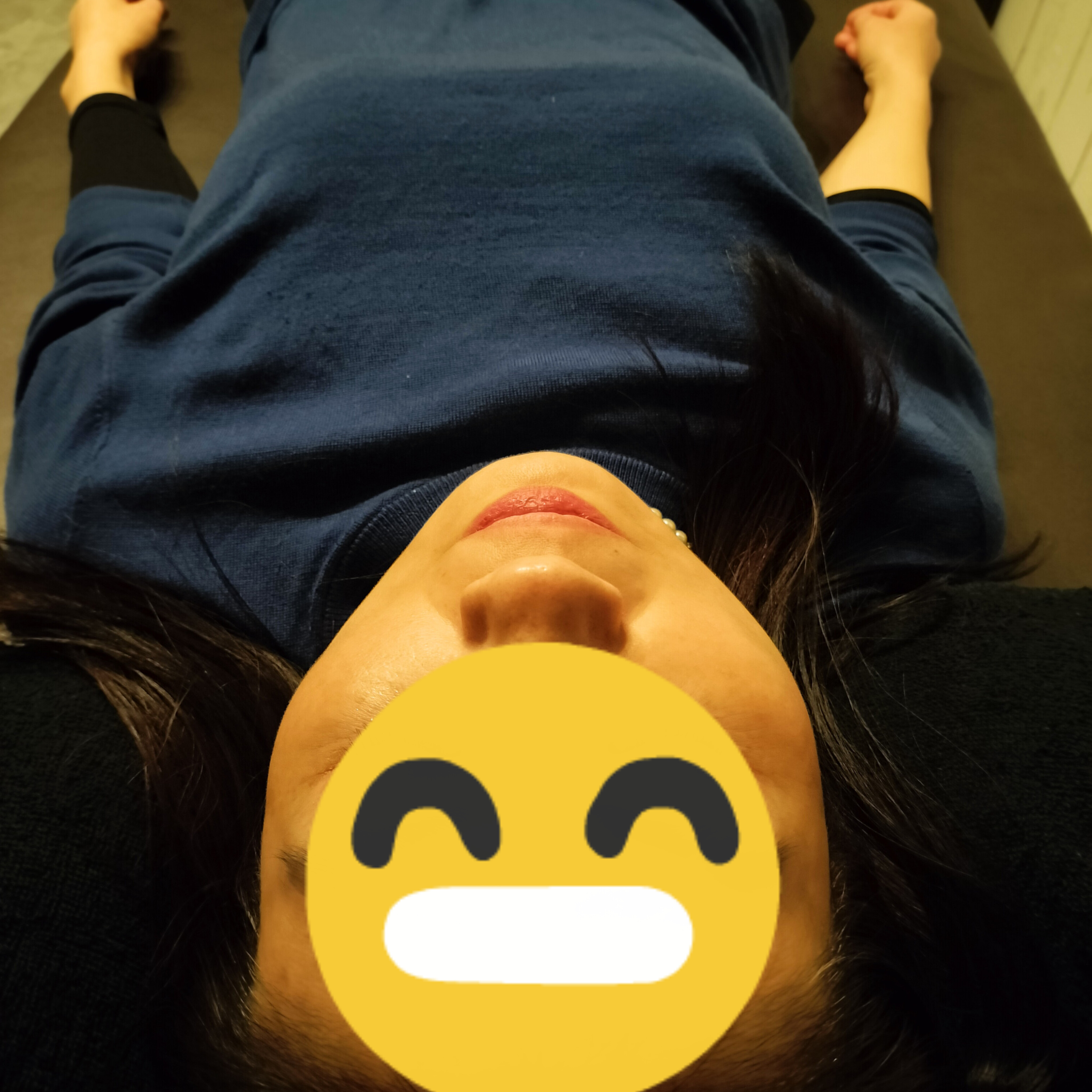 上半身は筋緊張が高く顎は左へ傾き、フェイスラインに左右差を認めました。開口幅も評価したところ指2本で痛み出現し、最大で開口するカクカクと関節雑音を認めました。咬筋など咀嚼筋に押圧を加えると痛み出現したため睡眠時や日常的にも噛み締めがあるのではないかと仮説を立てました。