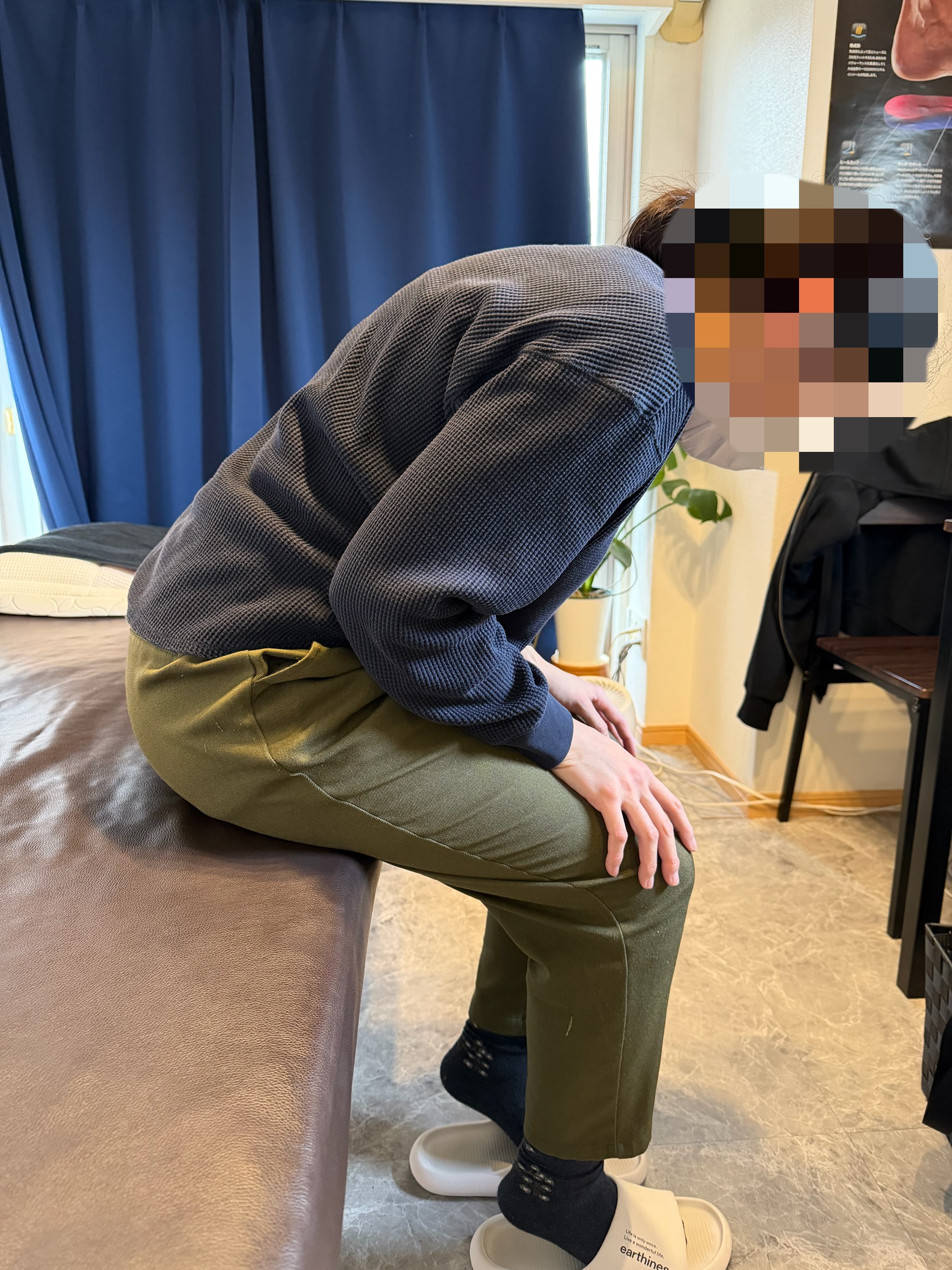 施術中の会話を通しては、仕事や生活の中で無意識に避けている動作や、不安を感じている場面についても深掘りし、身体的要因と心理的要因の両面から評価を行いました。これらを総合的に捉え、腰部単独の問題ではなく、全身のバランスの崩れとして状態を把握しました。