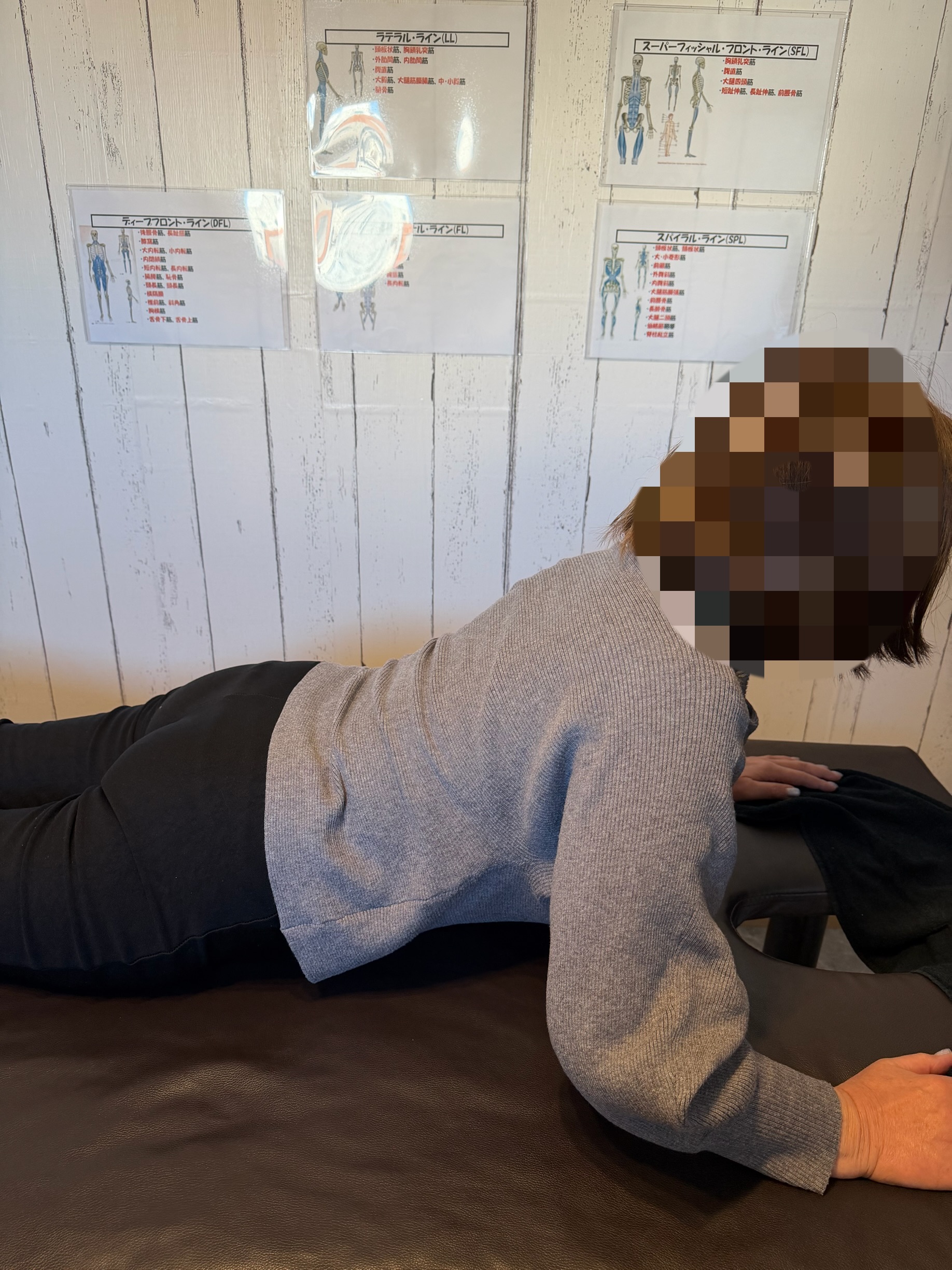 施術の各段階では、施術前後の姿勢や動作を写真で確認し、身体の変化を共有しています。これにより、ご本人が感覚だけでなく視覚的にも変化を理解でき、施術の効果や身体の使い方を納得した上で受けていただけるよう配慮しました。